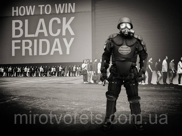 В епоху "недорозвиненого капіталізму більшість, як роздрібних, так і інтернет магазинів, практикують так звану Чорну п'ятницю. Це щось типу всесвітнього дня шопінгу, тільки трохи жорсткіше. У штатах траплялися масові тисняви в роздрібних супермаркетах. На щастя, інтернет дає можливість уникнути від довгих черг і купити товар у нашому магазині у будь-який час доби. Магазин Миротворець не став винятком і ми раді вам повідомити, що в п'ятницю 29-го листопада по неділю 1 грудня листопада на більшість товарів будуть акції та знижки від 5% до 50%.