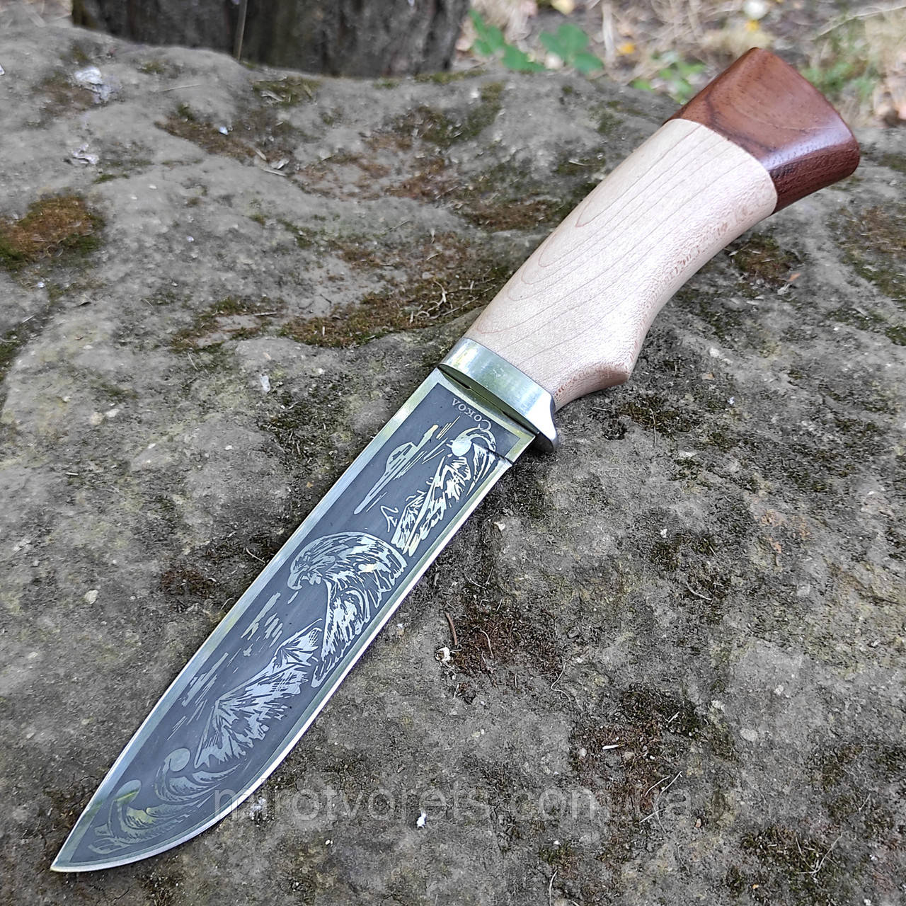 Ніж нескладний Сокіл. Клинок з нержавіючої сталі 65х13, ріжуча кромка додатково підправлена до необхідної гостроти.