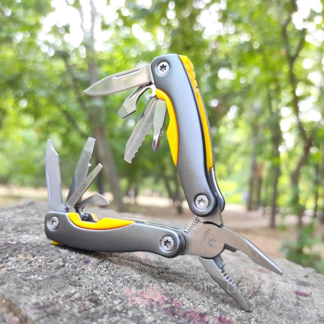 Багатофункціональний ніж мультитул Traveler, пасатижі. Незважаючи на компактні габарити і невелику вагу, він містить цілий набір інструментів, затребуваних в умовах міста і природи.