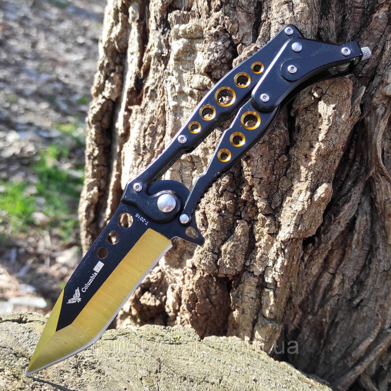 Ніж трансформер COLUMBIA USA Т-2016 танто має незвичайний спосіб розкладання. Конструкція ножа передбачає максимальний захист від складання. Можливість того, що ніж складеться в руці мінімальна. Дуже гострий, стильний і зручний у використанні ніж, зроблений 440 сталі. Своєю компактністю, добре підходить для щоденного використання в місті або ж у поході, туризмі або риболовлі. Є ножі з аналогічною розкладкою в іншому виконанні.
