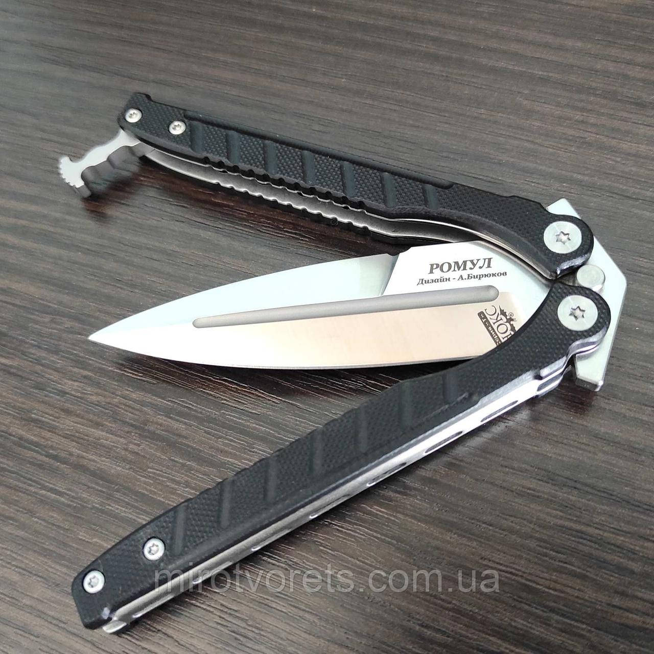 Ніж складаний (метелик) Нокс Ромул. Міцне, масивне лезо з AUS8 сталі. Рукоятка з профільованими нековзними накладками з G10. Ніж не комплектується чохлом
